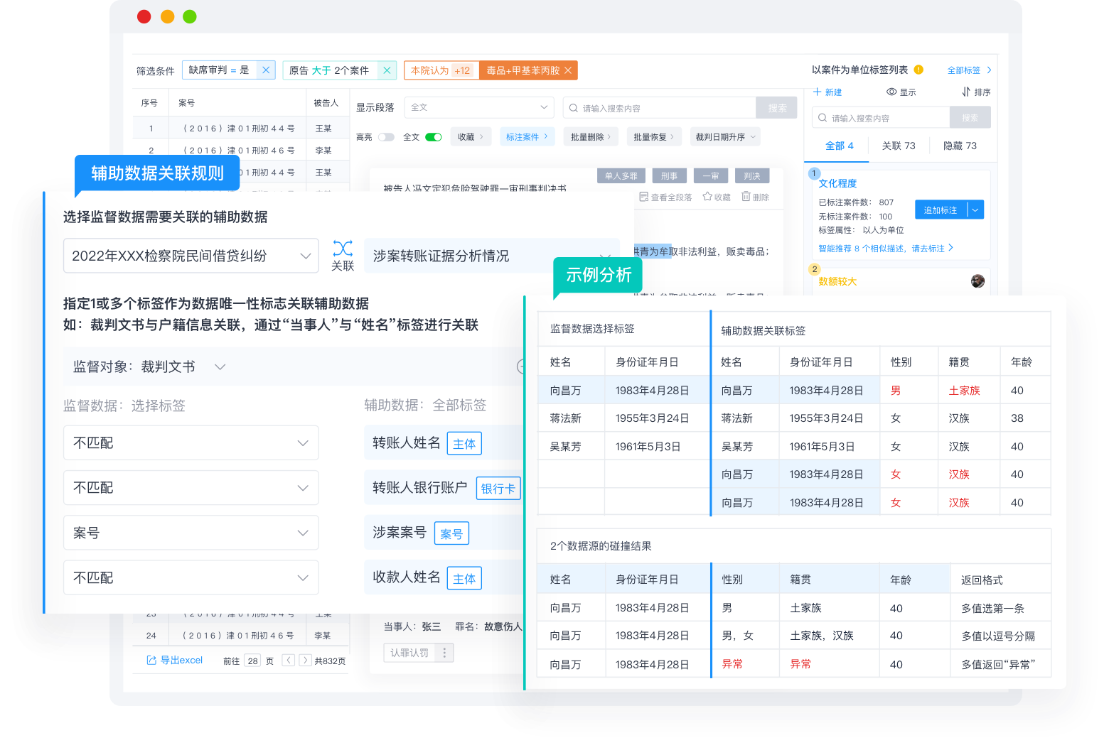 提供1.5亿+全国公开裁判文书、检察文书数据;支持本地裁判、检察文书数据导入。支持文书