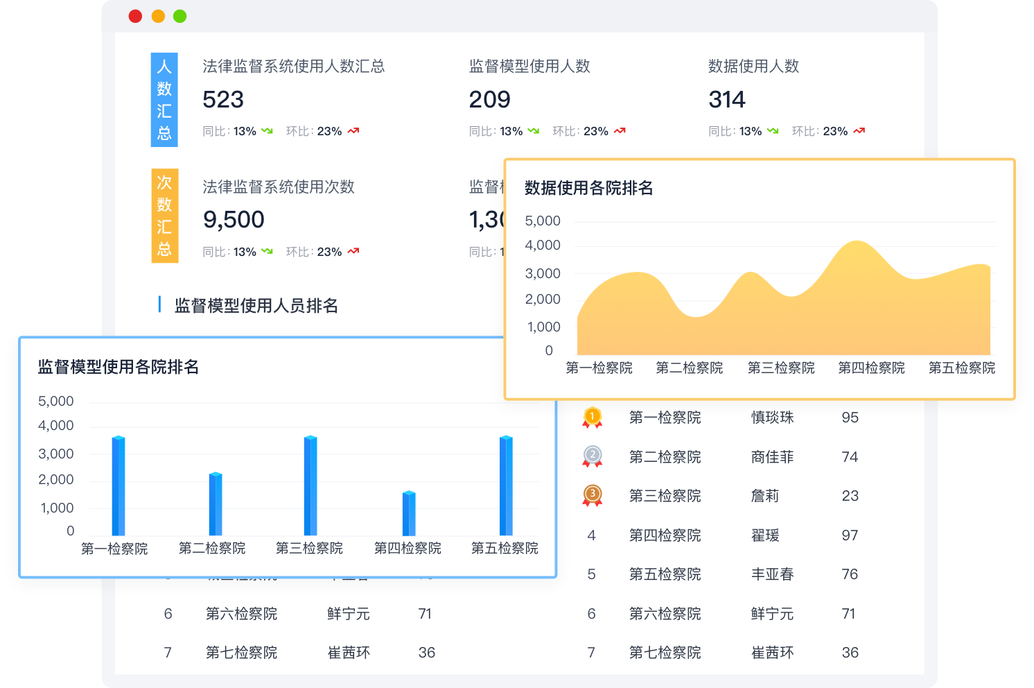 对核心监督数据、用户使用指标进行重点比对 分析,自动生成可视化图表展示,为检察院研