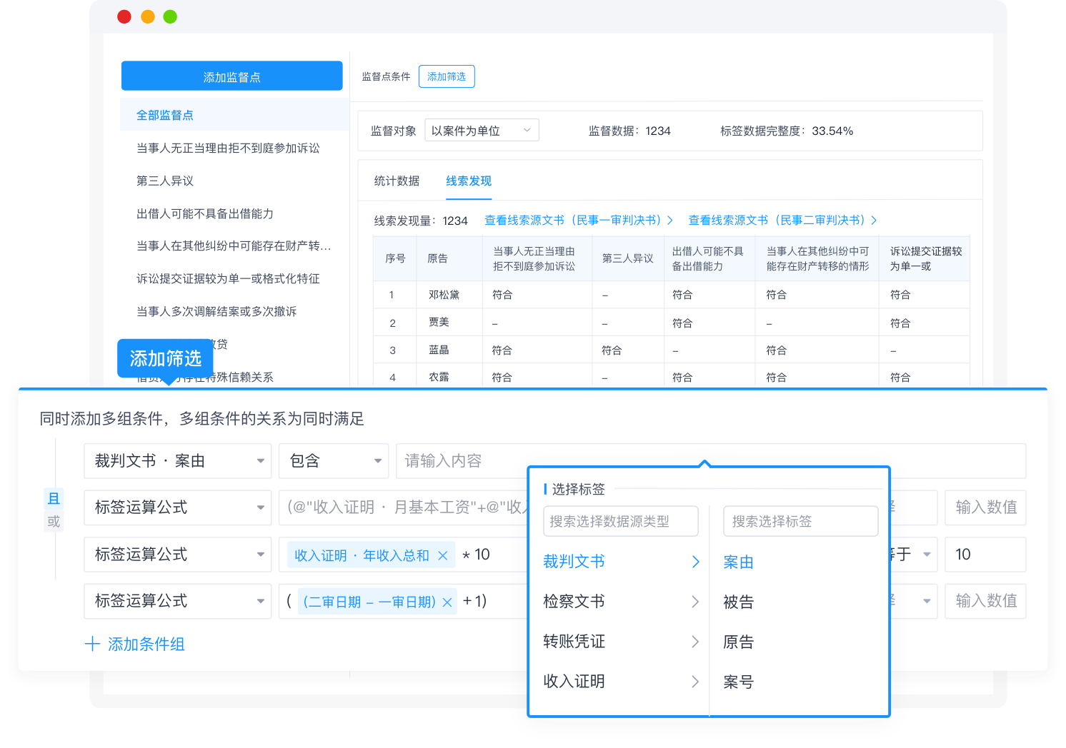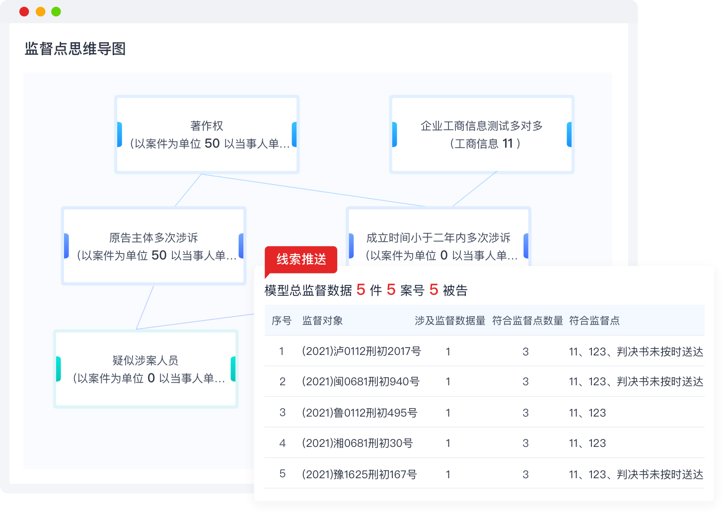 根据监督点规则,系统自动将关联数据比对碰撞,推送符合的监督线索。